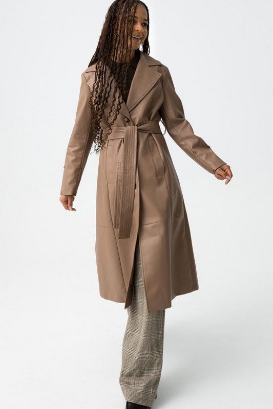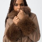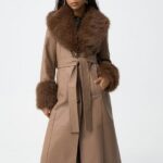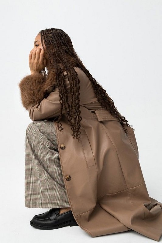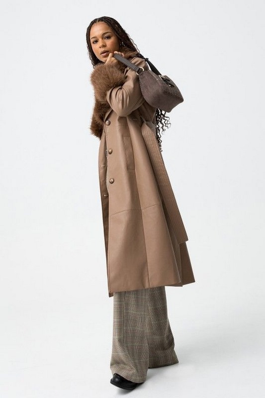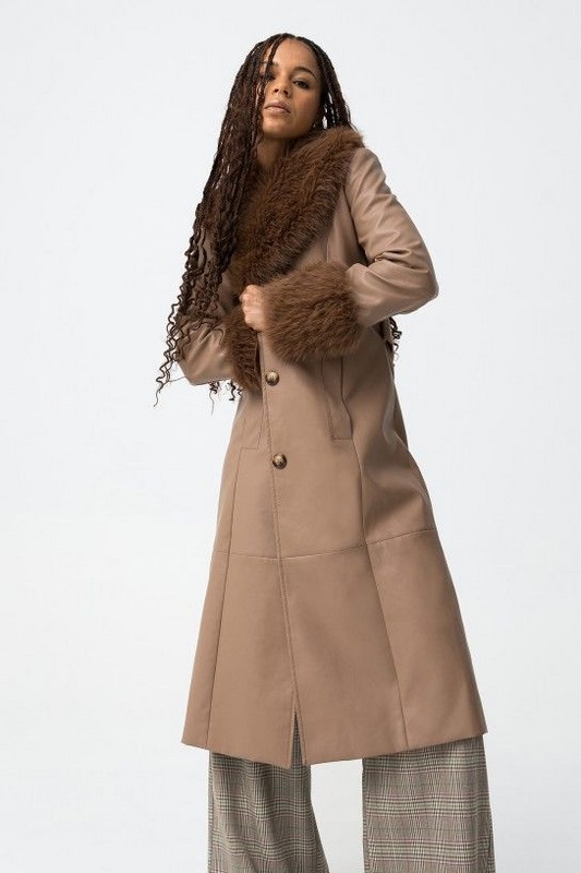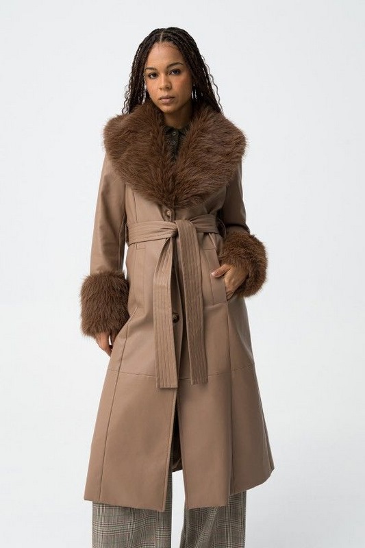 Abrigo ecopiel con cuello y puños de pelo que se pueden quitar y poner