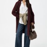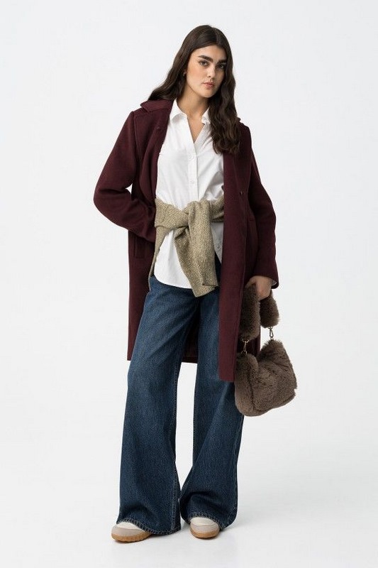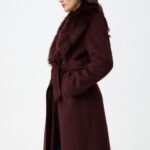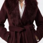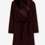 Abrigo recto de solapa con cinturón y cuello de pelo sintético de quita y pon.