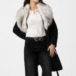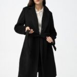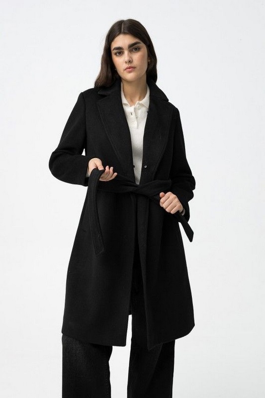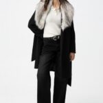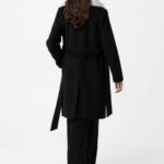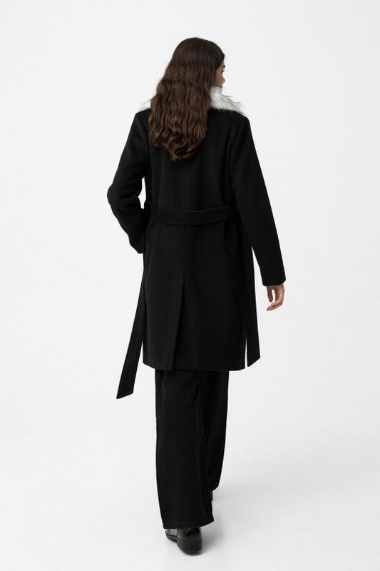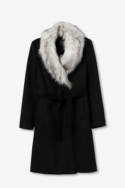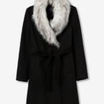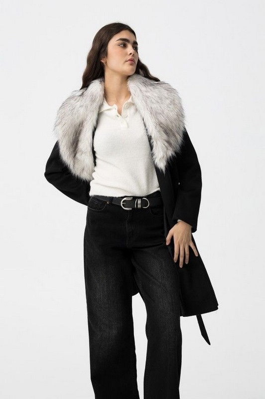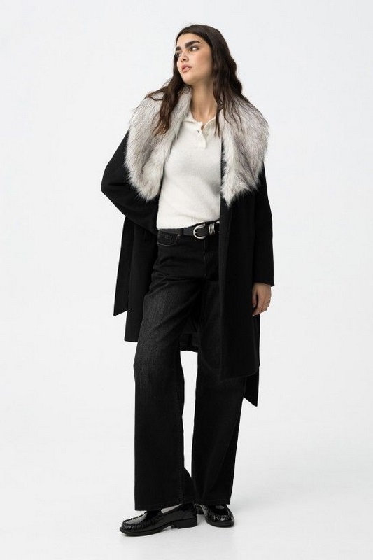 Abrigo recto de solapa con cinturón y cuello de pelo sintético de quita y pon.