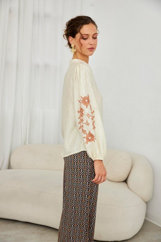 Blusa Con Bordado Mangas