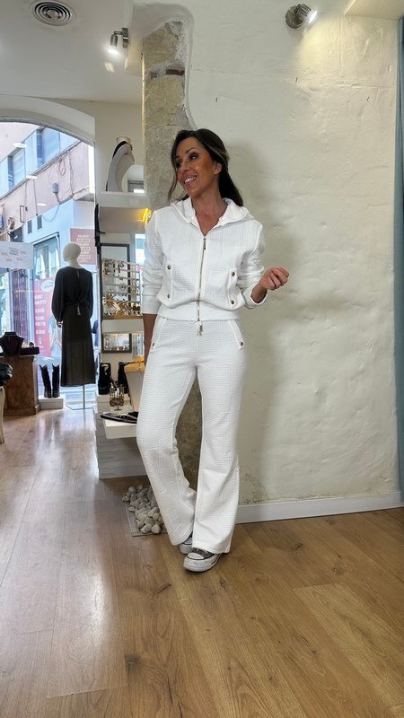 Chandal compuesto por chaqueta corta con capucha, falsos bolsillos y cremallera central