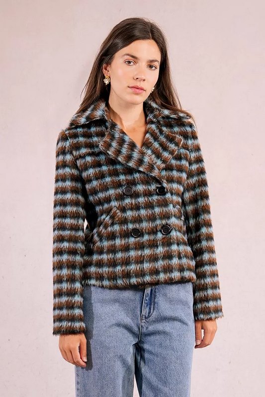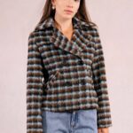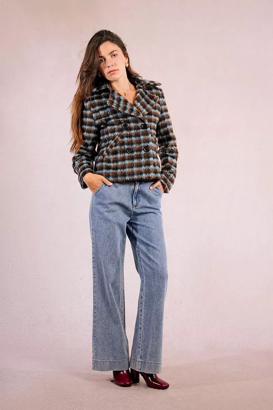 Chaqueton de cuello solapa, bolsillos y botonadura cruzada.