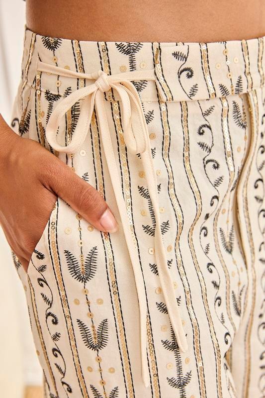 Pantalón de corte recto con bolsillos laterales y bolsillos cargo, cintura con lazada lateral