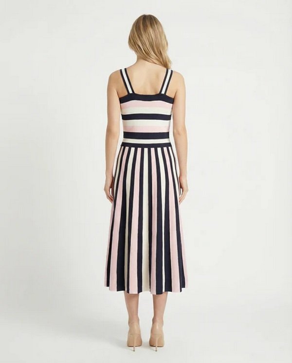 Vestido confeccionado en una mezcla de nylon y viscosa que combina durabilidad con fluidez. El diseño de tirantes ofrece un ajuste versåtil y cómodo, ideal para transiciones entre estaciones.