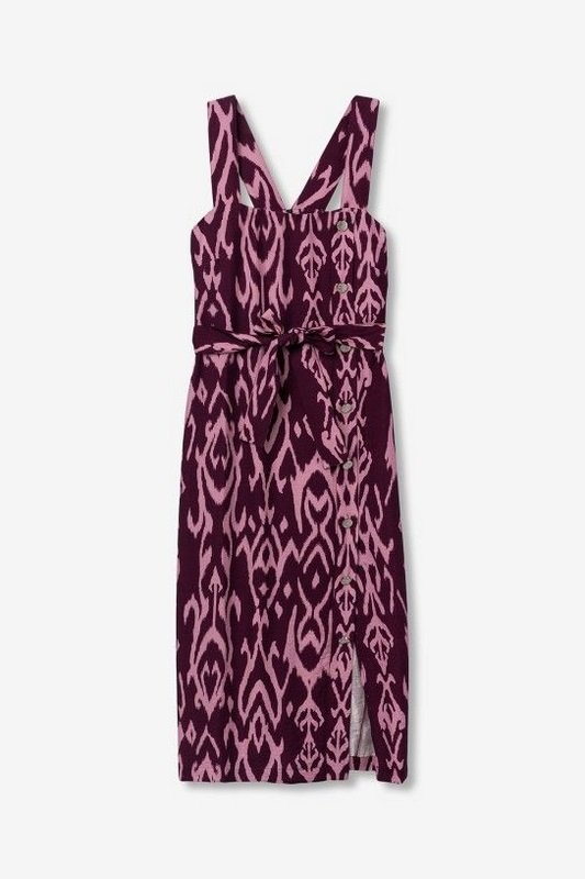 Vestido de corte ajustado con estampado gráfico, tirantes anchos y cinturón en la cintura.