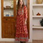 Vestido boho maxi, cintura ajustable, escote en V